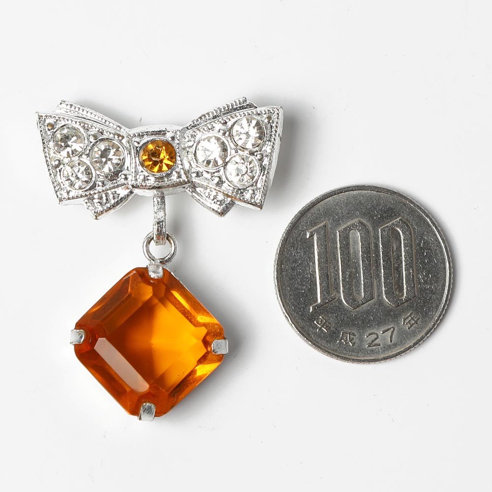 リボンとカットガラスのヴィンテージ・ブローチ デッドストック