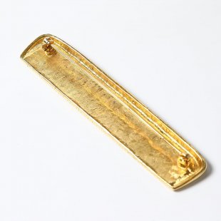 こちらはチェコスロヴァキア時代のヴィンテージブローチです。8.6cmのかなり大きめの金属製ブローチで、櫛モチーフになっています。金メッキが施されていて、暗めの生地に使用されると、パッと目を引く素敵なアクセントになります。職人さんの遊び心が感じられる楽しいブローチです。状態も良好。チェコスロヴァキア時代からのとっておきです。