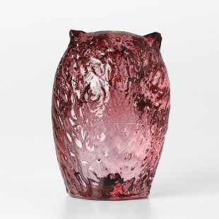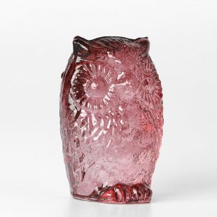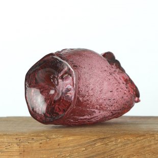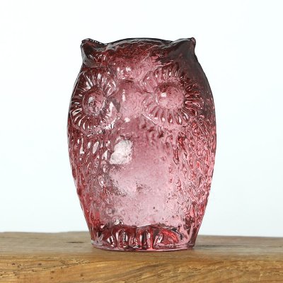 こちらはメイド・イン・チェコスロヴァキアのガラスの置物。国営企業だったボヘミアグラス社の商品です。今回のお色はピンク・パープル。ガラスを型にはめて作られたミミズクのモチーフです。高さは5.5cmでちいさめですが、おっとりとした表情がなんともかわいいミミズクさんです。光の入り具合で、表情が綺麗に楽しめます。もちろん、インテリアとしてもお使いになれます。光のさす場所に置いてあげてください。チェコの人には懐かしい民芸品です。