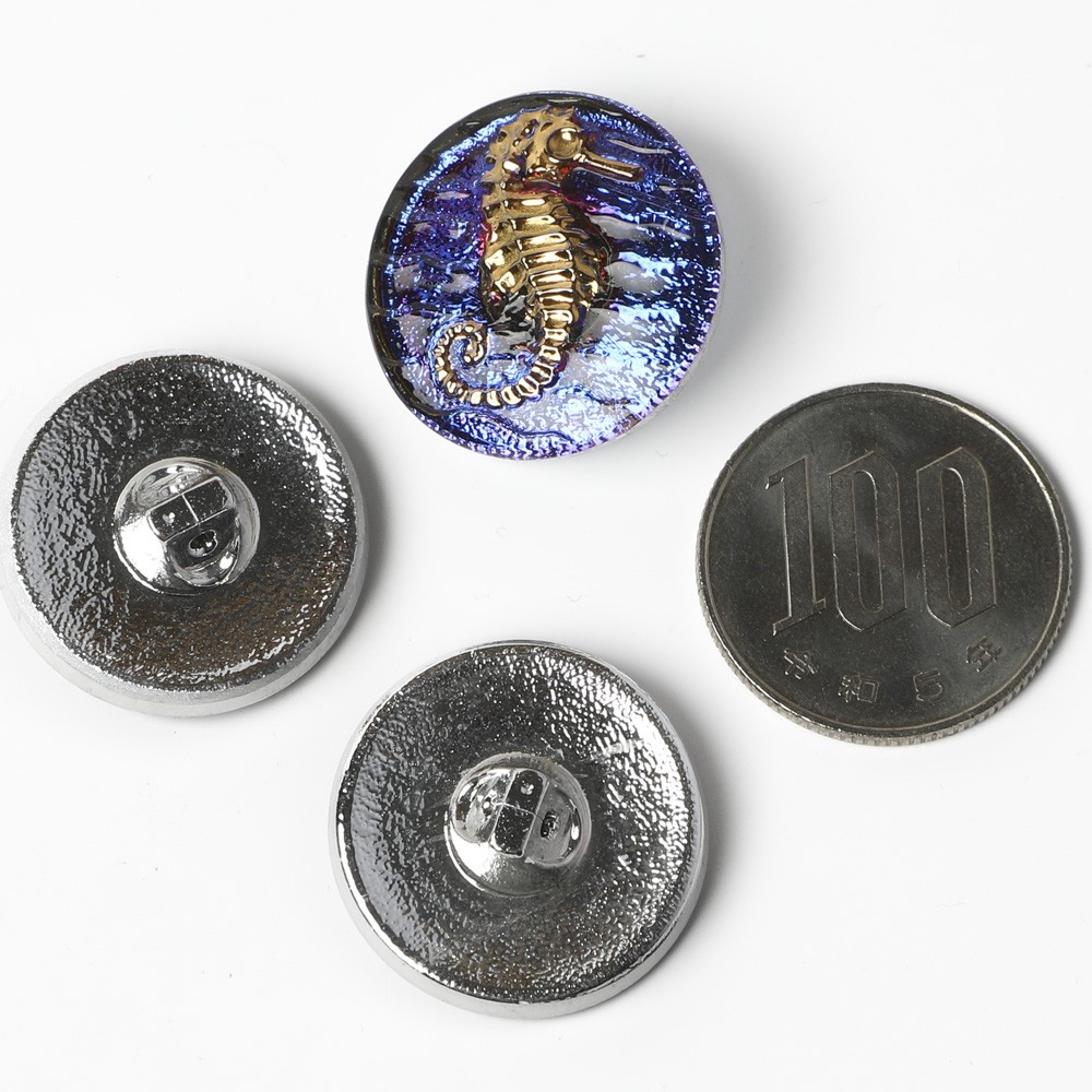 金のタツノオトシゴのガラスボタン 2.3cm ブルーパープル