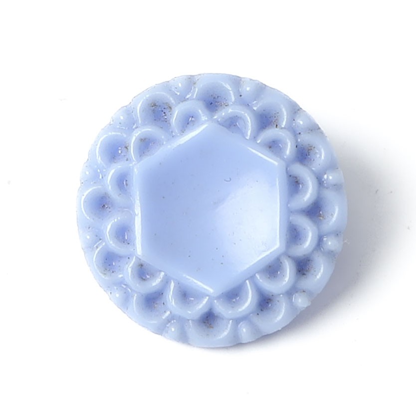 こちらはチェコスロヴァキア1920年代前後のアンティークのガラスボタン。不透明の水色のガラスを使用したボタンで、繊細なお花のデザインのガラスボタンです。おっとりとしたノスタルジックなデザインが魅力の貴重なガラスボタンです。チェコからのとっておきです。シャツなどに使うと、クラシックな雰囲気が演出できます。大変古いボタンですので、ボタンの際に製造時に出来てしまうばりがみられます。状態の良いものを発送しておりますが、裏面に小さなチップ(かけ)のあるボタンがございます。ご了承の上お求めください。