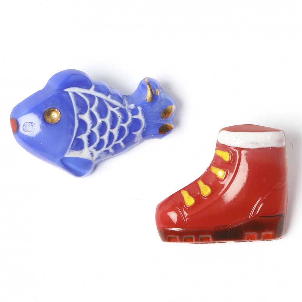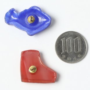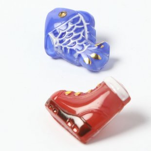 バーボフカが長年コレクションしてきたガラスボタンからのお品です。今回はブルーのお魚のボタンと靴のボタンの2個セット。それぞれが個性豊かなデザインの楽しいセットです。現行ではどれも入手困難な貴重なお品です。