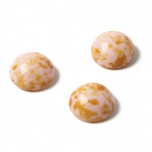 こちらはチェコのガラス工房からの新作のガラスカボションです。不透明のベビーピンクのガラスにブラウンが混ざって、天然石のような風合いの美しい仕上がりです。形自体はぽっこりと丸みを帯びたシンプルなものです。フォルムはひとつひとつ手作りですので、パソコンで描くような完璧な丸ではございませんので、ご了承ください。(写真をご参照ください。)ガラスの国チェコからのとっておきのカボションです。