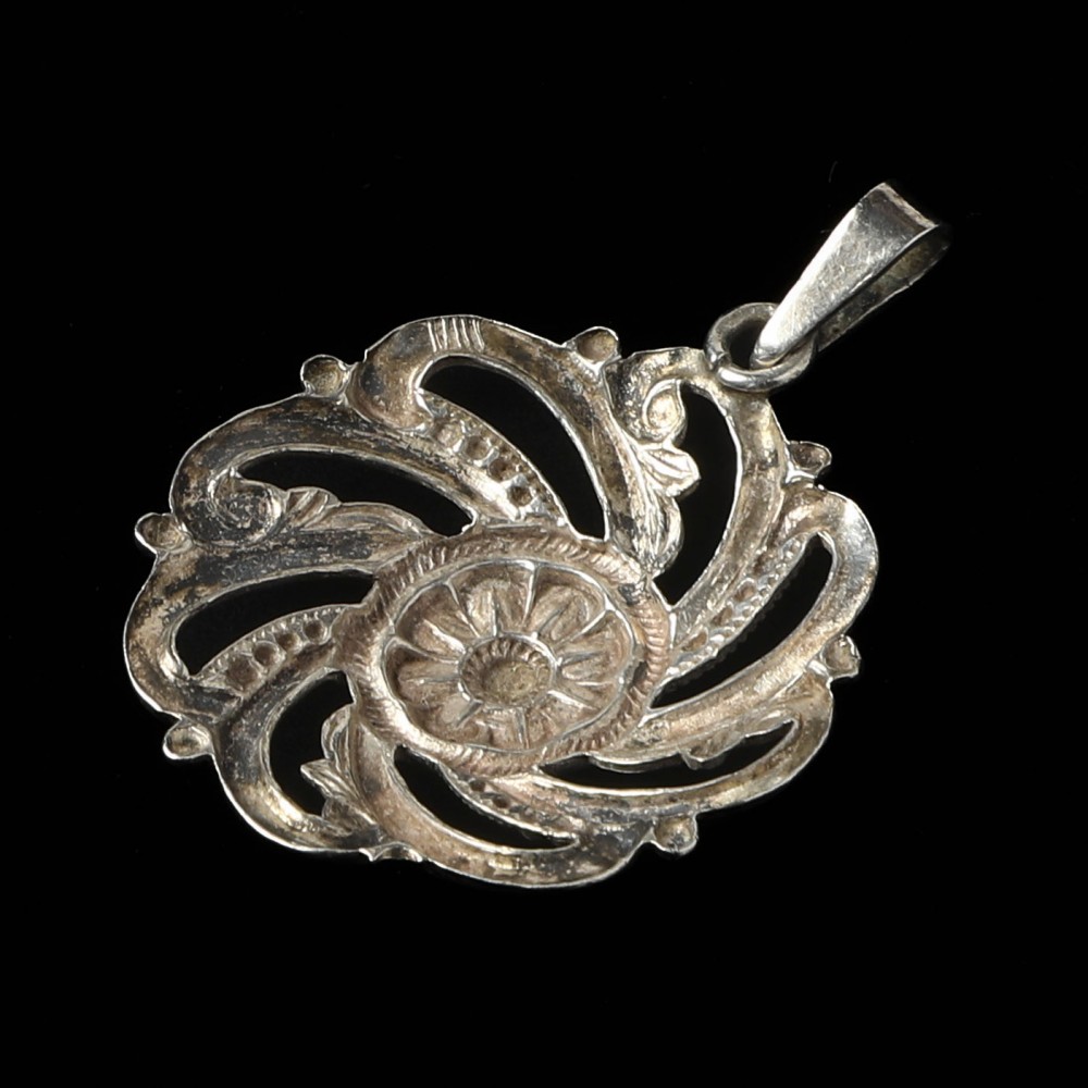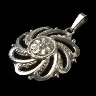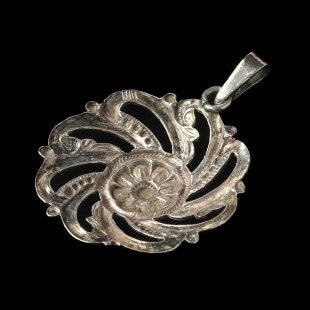 > 銀製 チェコ・アンティークの花模様ペンダント