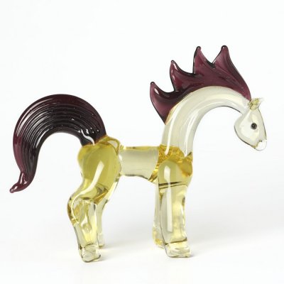 チェコはガラスの国として知られていますが、こちらはそのガラス工芸品のお馬さんです。熟練したガラス職人さんが、溶けたガラスを手作業で伸ばしたり貼り付けたりしながら成形していきます。ボディーはイエロー、たてがみと尻尾は紫のガラスの格好の良いお馬さんです。凛とした姿が美しい出来栄えです。我が家にも同じものをお迎えいたしました。2026年の干支にいかがでしょうか。チェコからのとっておきです。