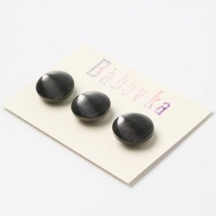 こちらはチェコスロヴァキア時代のヴィンテージ・ガラスボタン。バーボフカが長年集めてきたコレクションの中からご紹介です。ぽっこりとした形で、表面にはラインの模様、グラデーションでシルバーのお色が入っています。シックで雰囲気のある美しいガラスボタンです。現在では生産されていない貴重なヴィンテージです。