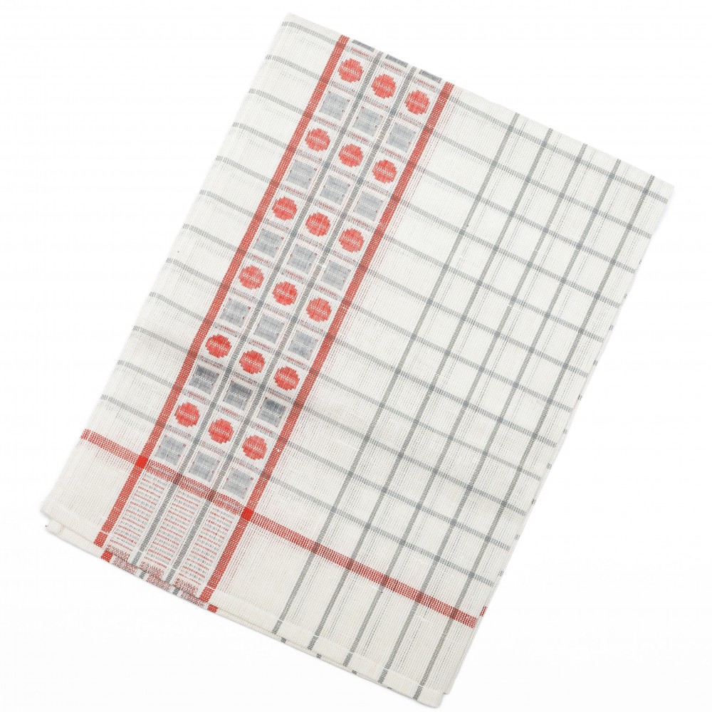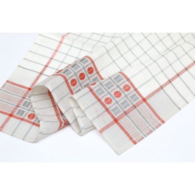 こちらはチェコスロヴァキア時代のキッチンクロス。デッドストックの未使用品です。社会主義時代のリネン製品の国営企業TEXLENからのお品です。(残念ながら中国製などのリネン製品に押され、2007年に閉鎖、今では存在しない会社です。)白地にピンクとグレーのライン、またコーヒー豆のような模様の入ったレトロで可愛いクロスです。麻の量が多いようでパリッとしたリネン特有の硬さがあります。使えば使うほど味と吸水性が出てくる優れものです。50x 70cmと割と使いやすいサイズで台所仕事に活躍してくれそう。もちろん台所にも明るい彩りを添えてくれます。布の上部にはフック用のテープも縫い付けられています。長く愛して頂けるチェコの素敵なレトロ商品です。