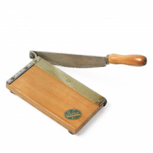 こちらはチェコスロヴァキア時代の写真カッター。ロゴからドイツ製と思います。台座と刃は金属製、裁断台と柄の部分は木製です。かなり古いもので、20世紀前半のものと思います。昔の写真はサイズが小さく自宅で引き伸ばされていたことも多かったため、家庭にもこのようなカッターがよく使われていました。こちらのカッターはラインを波型にカットできる優れものです。(レトロな写真、よく波型に裁断されていたりしますね。)とても切れ味が良く、一枚の薄い紙でもずれずに、シャープに切り落とせます。金属と木のコンビネーションが可愛い一品。昔懐かしいチェコスロヴァキア道具の良品です。こちらでも貴重なお品です。