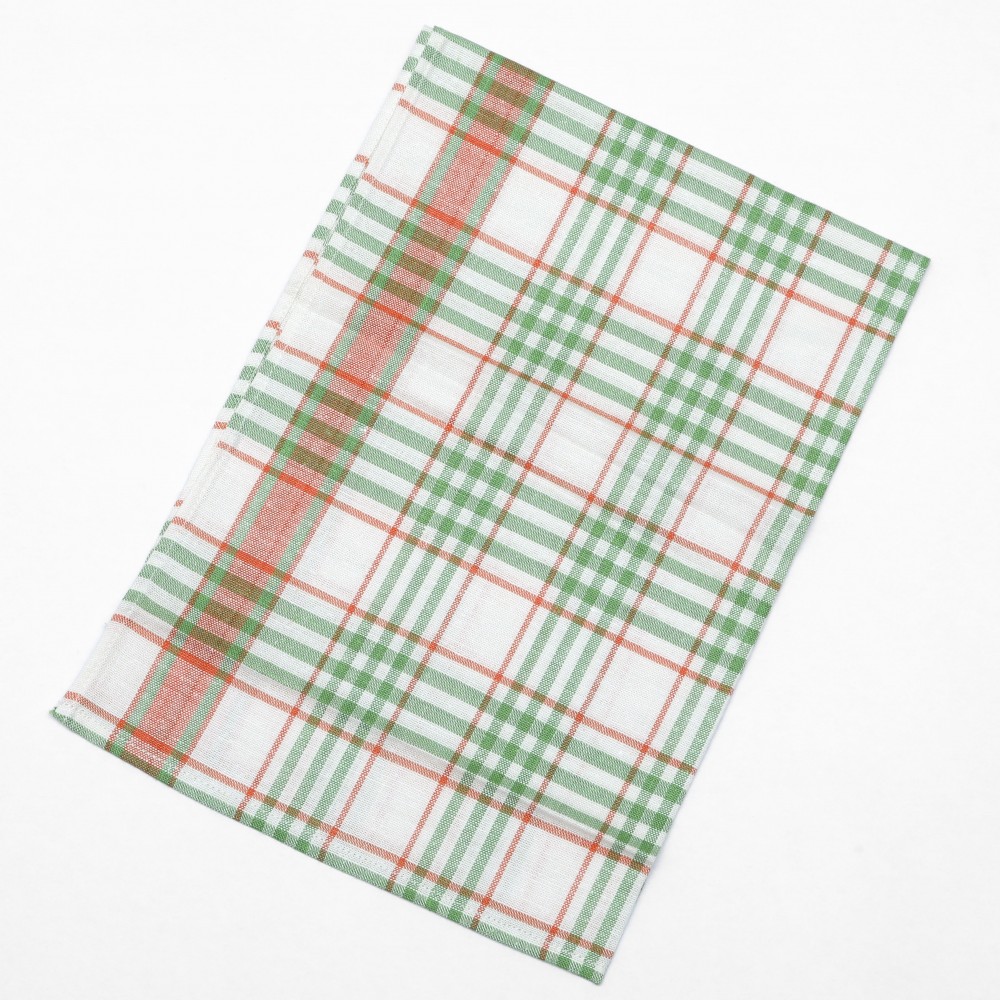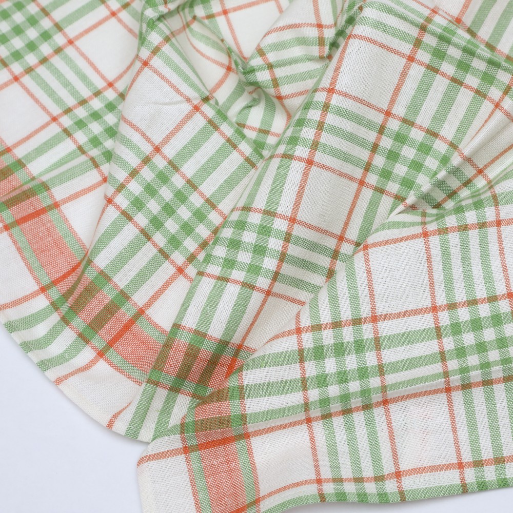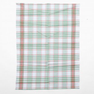 こちらはチェコスロヴァキア時代のキッチンクロス。デッドストックの未使用品です。オレンジと緑のスタンダードなデザインのチェック柄。綿100%の商品と思います。(麻が混じっている可能性もあります。)昔の丈夫で上質な綿素材で、使えば使うほど味と吸水性が出てくる優れものです。46x 70cmと割と使いやすいサイズで台所仕事に活躍してくれそう。もちろん台所にも明るい彩りを添えてくれます。布の上部にはフック用のテープも縫い付けられています。長く愛して頂けるチェコの素敵なレトロ商品です。