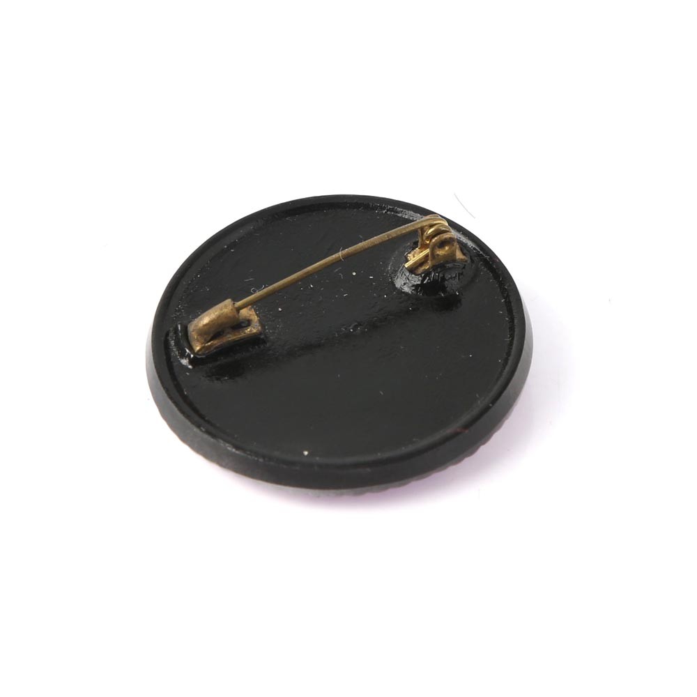 こちらはチェコガラスのペガサスのブローチ。直径 3.4cmとかなり大きめのブローチです。ジェットガラスが使用され、その上からシルバーの金属塗料が塗布されています。部分的な吹き付けでブラックとのグラデーションになっております。大きめでまた、厚みがあり独特のセンスが漂います。このタイプのガラスのブローチはガラスの国チェコ特有の物です。かつては(60年代くらいまで)割と見られたデザインですが、いまではなかなかお目にかかれなくなりました。優しい雰囲気で大きめですのでスカーフ留めなどにちょうどいいアクセントになります。また帽子などにもおすすめ。円の周辺には綱のような装飾が施されています。チェコならではの日本にはないなかなかハイセンスなブローチかと思います。