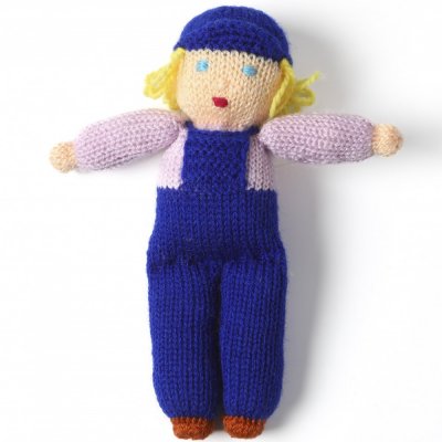 こちらは編み物で作ったお人形。チェコでは今、昔あった家庭のアートがちょっとした人気です。作家の大きな作品ではないけれど、家庭で製作されたノスタルジーな手作りのアイテムは、チェコでは昔社会主義時代に物資が豊富ではなかったこともあり、昔からなかなか深みのある分野。こちらのお人形さんは家庭の主婦ヘレナさんが新しく編んだ男の子のお人形です。ブロンドで水色の瞳で青い帽子、青いツナギを着ています。他にご紹介している子たちと比べて20cm弱のちょっと大きめの寸法です。おててが、「オー!」みたいな格好になってます。:)優しい雰囲気のキュートなお人形。お子様へのプレゼントとしてもオススメです。