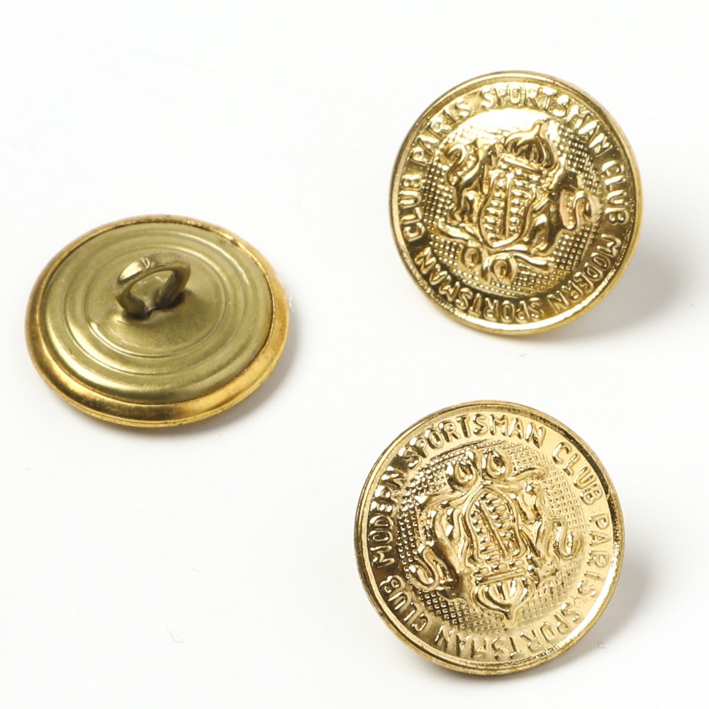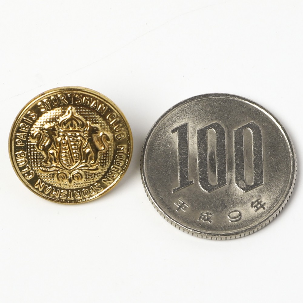 こちらはチェコスロヴァキア時代のヴィンテージ・メタルボタン。錫(すず)製の高級メタルボタンで、ゴールドのお色。ティサーのメタルボタンの歴史は古く18世紀後半にまで遡ります。今でも職人さんが一つ一つ手作業で制作しているボタンです。こちらでティサーのメタルボタンの記事もご覧いただけます。こちらは、表面にヨーロッパの王家の紋章をあしらったノーブルでクラシックなメタルボタンで周りにはスポーツマン・クラブ・パリと印字されています。黄色味の強いクリアゴールドのお色。1960-1980年代頃までのヴィンテージボタンです。状態もとても良いものです。中間空洞ですので、水洗いの洗濯はお勧めしません。洗濯される時は洋服からはずされるのをお薦めしています。ティサーのメタルボタンはとても軽く、アクセサリーのマテリアルとしてもおすすめです。