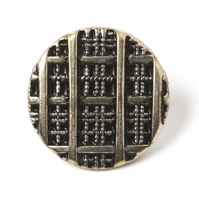 こちらはチェコスロヴァキア時代のヴィンテージ・メタルボタン。錫(すず)製の高級メタルボタンで、A S(アンティークシルバー)のお色。ちょっと黄色がかったシルバーです。格子模様のシックで大人っぽいメタルボタンです。表面に黒い塗料を焼き付け、コントラストを引き立てています。ティサーのメタルボタンの歴史は古く18世紀後半にまで遡ります。工場では今でも職人さんが一つ一つ手作業で制作しています。こちらでティサーのメタルボタンの記事もご覧いただけます。こちらは1950-70年代頃までのヴィンテージ、デッドストックです。状態もとても良いものです。中間空洞ですので、水洗いの洗濯はお勧めしません。また極少量のニッケルが含まれています。洗濯される時は洋服からはずされるのをお薦めしています。ティサーのメタルボタンはとても軽く、アクセサリーのマテリアルとしてもおすすめです。