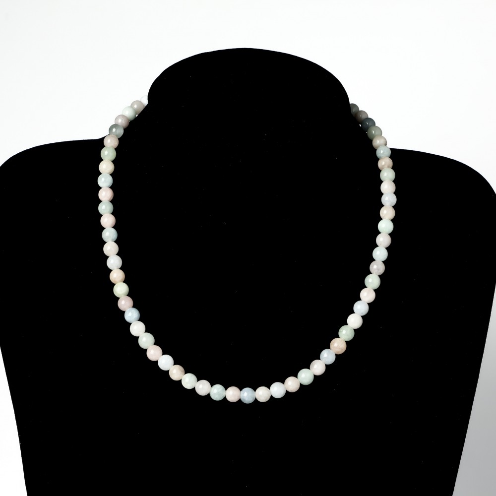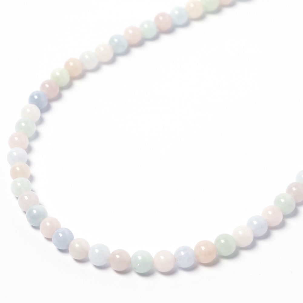 こちらはベリルと呼ばれる緑柱石の石を使用したネックレスです。淡いピンク、イエロー、ブルーなどのパステルカラーをミックスした優しい雰囲気のネックレスです。石の直径は6.2mmです。プラハの宝石商から直接入手した新品です。そのまま肌の上からでも、シャツの上からでも女性らしくエレガントなおしゃれを演出します。