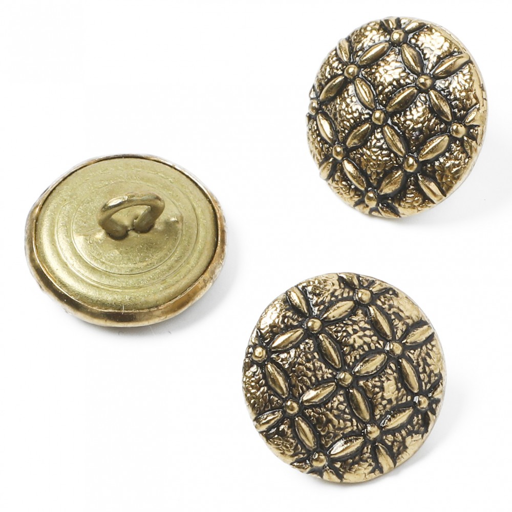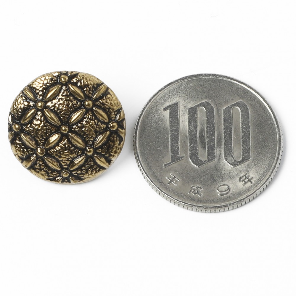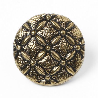 こちらはチェコスロヴァキア時代のヴィンテージ・メタルボタン。錫(すず)製の高級メタルボタンで、A G(アンティークゴールド)のお色です。格子模様で大人っぽいレトロな雰囲気のメタルボタンです。表面に黒い塗料を焼き付け、コントラストを引き立てています。ティサーのメタルボタンの歴史は古く18世紀後半にまで遡ります。工場では今でも職人さんが一つ一つ手作業で制作しています。こちらでティサーのメタルボタンの記事もご覧いただけます。こちらは1950-70年代頃までのヴィンテージ、デッドストックです。状態もとても良いものです。中間空洞ですので、水洗いの洗濯はお勧めしません。また極少量のニッケルが含まれています。洗濯される時は洋服からはずされるのをお薦めしています。ティサーのメタルボタンはとても軽く、アクセサリーのマテリアルとしてもおすすめです。