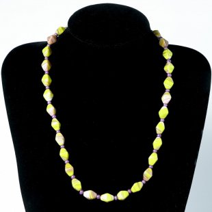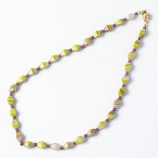 黄緑&パープル ヴィンテージ・ガラスのネックレス 55cm