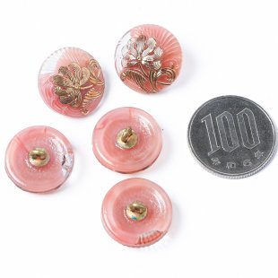 ガラスボタン 植物紋様 1.8cm ミルキーピンク&ゴールド