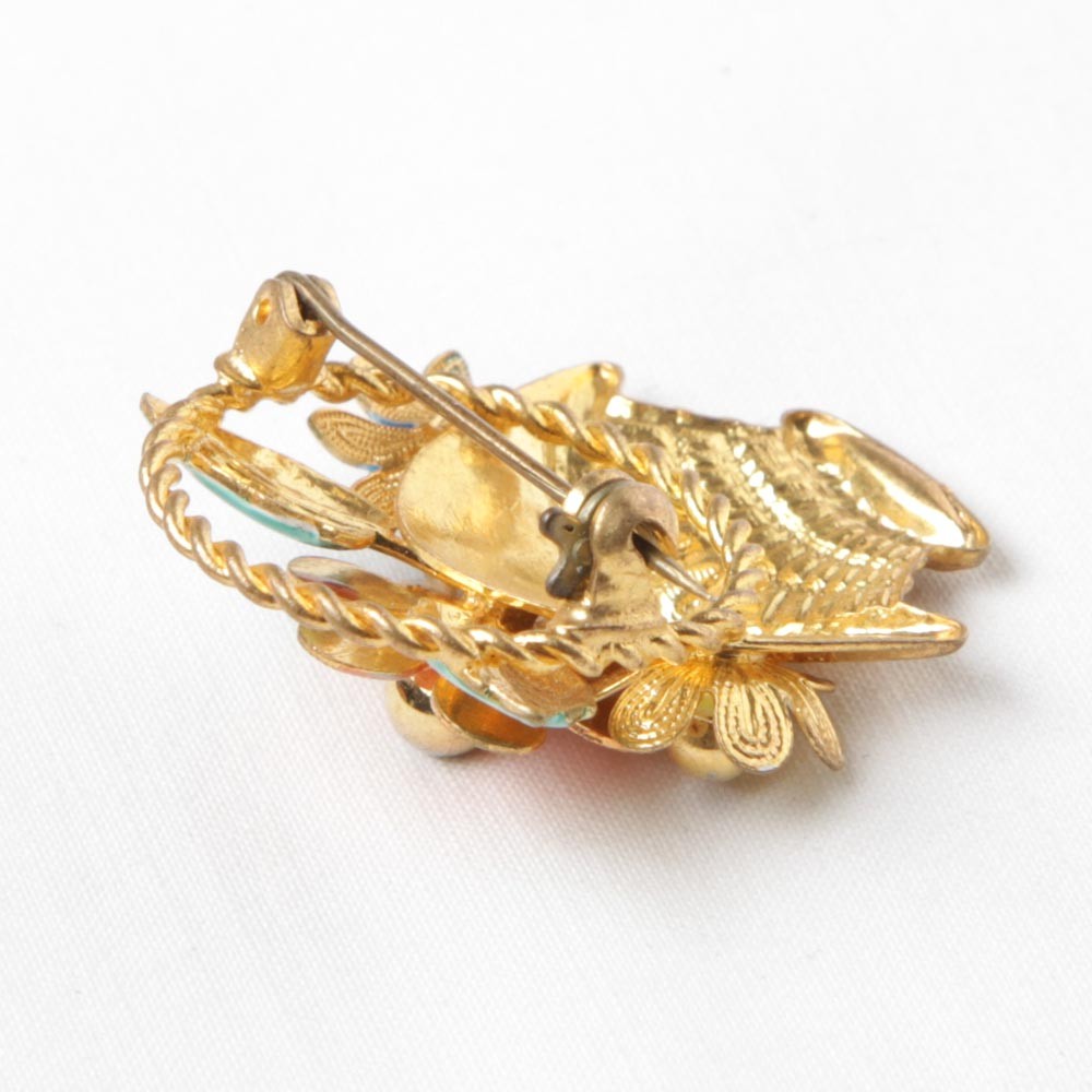 こちらはチェコスロヴァキア時代の花かごのブローチ。パステルカラーのとても爽やかで明るい雰囲気のブローチです。金色のおしべのポッチが金色で素敵なアクセントになっています。白いシャツなどの付けると雰囲気が明るくなりそう。大体1960年代以降のヴィンテージと思いますが、年代は定かではありません。ピンなど状態は良好です。
