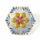 ヘキサゴン ブルー&イエローのガラスボタン 2.2cm