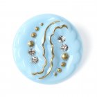 ミルキーブルー ・ペーズリー ガラスボタン カットガラス付き 2.7cm