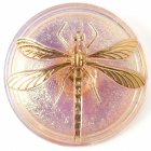 オーロラピンク 4.1cmの大きなトンボのガラスボタン