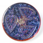 3.1cm 3枚のリーフ 大きなガラスボタン ブルー&金彩