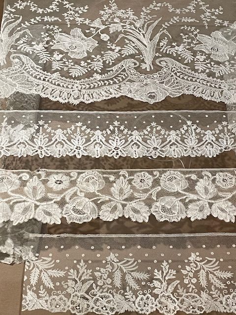 優雅な植物紋様のボビンレースと針作業の手作業の美しさ。ここでも堪能させていただきました。