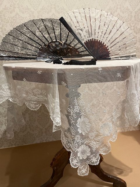 優雅な植物紋様のボビンレースと針作業の手作業の美しさ。ここでも堪能させていただきました。