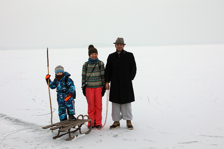 最後に友人に記念写真を撮ってもらいました。この壮大な景色を独り占めのバーボフカ一家でした。私も息子も凍った湖の上は初体験で、地元の友人に感謝です!今度は私たちもスケートを用意して挑もうと思いました。