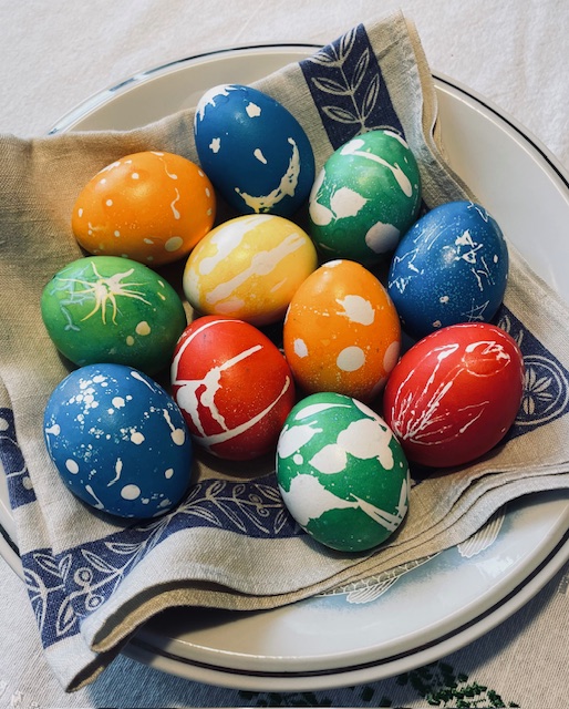 今年は引っ越した先、ナーホド市での初めてのイースターです。去年のイースターまでは、我が家は友人のいる北チェコの田舎にお邪魔して、柳を編んだ鞭を片手に、お尻ぺんぺんをしに外を練り歩いていましたが、こちらではプラハ同様、もうその風習は(叩かれる女性には人気がないものあって)あまり行われないそうで、散歩したりご馳走を楽しんだりするこじんまりしたイースターでした。家で家族みんなで卵をペイントしました。まず、ロウを溶かして、そのロウで針を使って柄を施した後、食紅の液につけて彩色、その後蝋燭の火で丁寧に、卵の表面についているロウを落とします。そして完成です。今日はイースターマンデー。イースター休暇で外で遊びすぎ風邪気味の息子は、お家でゆっくり、おばあちゃんからもらったクッキーを食べながらテレビを見ています。これもまた幸せなイースターの過ごし方だなあと思うバーボフカ母でございます。