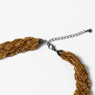 アクセサリー > チェコ・シードビーズのネックレス 艶やか イエローブラウン 47cm