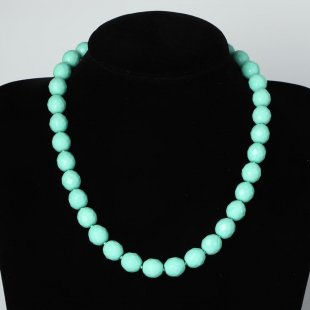 こちらはチェコのビーズ工房の新作のネックレス。多面体の1.2cmのガラスビーズでお色は不透明のクリーム・グリーンのビーズを使用して制作されたネックレスです。パッと明るい雰囲気の華やかでキュートなネックレスです。長さは45cm弱、また8cmのエクステンションもついています。ビーズが大きめですので、割と重みがあります。新品ですのでプレゼントにもおすすめです。存在感のある素敵なアクセントになります。