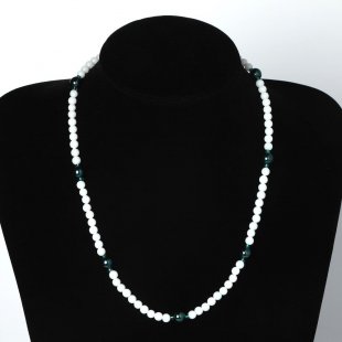 アクセサリー > ヴィンテージ・ガラスのネックレス ダークグリーン&ホワイト 48cm