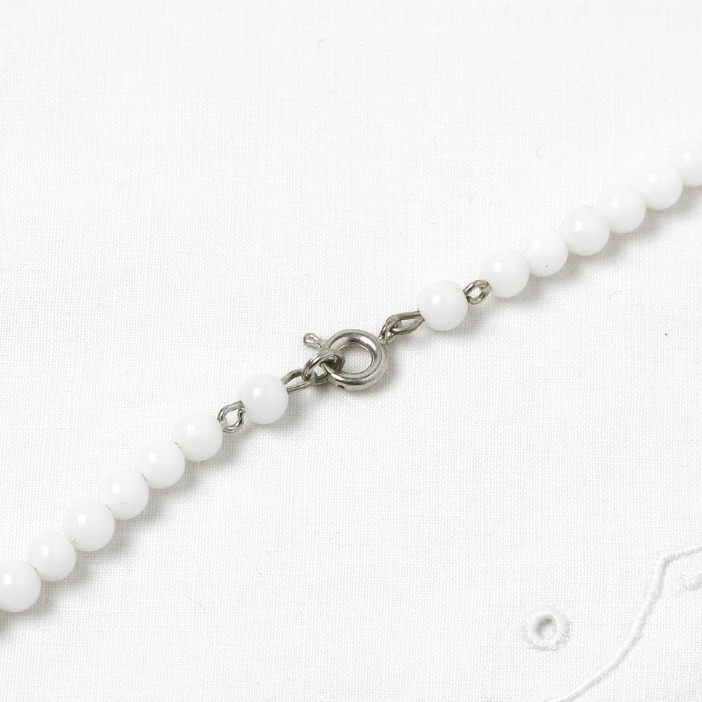 こちらはヴィンテージのガラスビーズのネックレス。デッドストック で入手したものです。乳白色の5mmのビーズと深いグリーンの8mmのビーズが使用されています。優しい素朴な雰囲気の仕上がりです。パステルの明るいお色のお洋服などにつけるととてもキュートです。季節を選ばず使って頂けるネックレス、チェコスロヴァキア時代のネックレス、1970−80年代前後のものです。