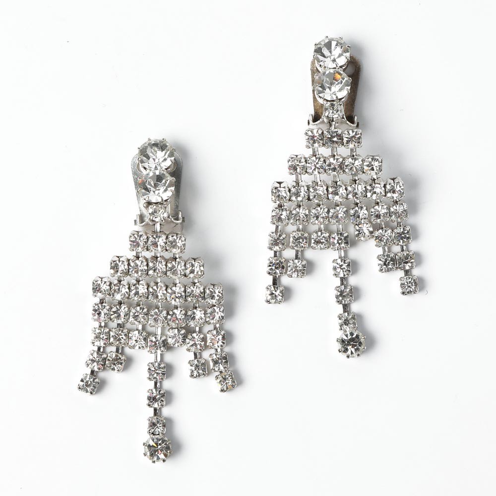 こちらはチェコスロヴァキア時代ヴィンテージ・イヤリングです。ピアスではなく、クリップタイプのものです。ラインストーンのもので長さは6cm弱の大きめです。クリスタルのラインストーンで品の良いエレガントな仕上がりです。クリスタルガラスの反射の強い美しい輝きを楽しめます。パーティーなどのとっておきのシーンに活躍する豪華な存在感があります。もちろん普段使いにも・・・。こちらは70-80年代頃のものと推定します。デッドストックで入手した未使用品ですので、状態も新品のようです。チェコスロヴァキアからの良品です。