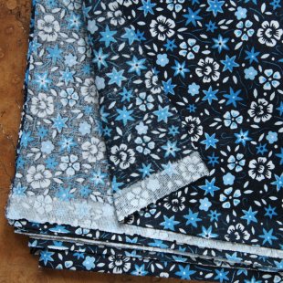 好評を頂いておりますチェコの新作の布。閉鎖の多い近年ですが今でも少しずつクラシックな柄の布を生産している布屋さんがあります。時間をかけて探したとっておきのチェコの布を今回もお届けです。こちらは藍の地に青いお花がちりばめられたノスタルジックなお柄。こちらでもなかなか見かけられなくなったクラシックなお柄。幅は150cmです。2mの長さですが50cm売りになります。素材は少々厚手の綿です。