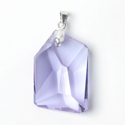 こちらはアレキサンドライト・ガラスのペンダントヘッド。今はないアンティークショップで15年ぐらい前に古いヴィンテージとして入手したものです。3cmとガラス石としては大振りで、不規則なカットがモダンでおしゃれです。お色は蛍光灯や自然光で色味が変化しますが、日常の自然光ではピンクがかった紫のお色です。変則的で柔らかな反射がクールで涼やか。1940-60年代頃の古いものですが、現代的なファッションのアクセントとして活躍されると思います。在庫は販売開始時6個あります。大きなかけはありませんが、全てによく見ないとわからない程度のごく小さな欠けがあります。経年の保存でできてしまったものです。ご了承の上ご購入ください。パーツは新しいものを使用しています。