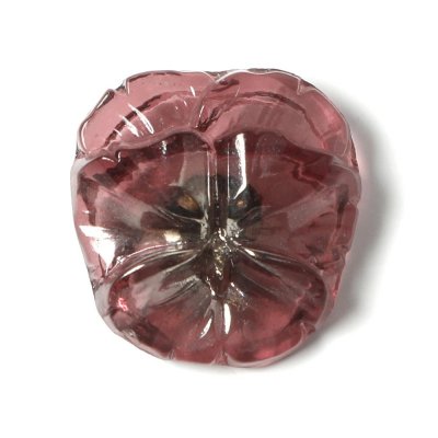 こちらはガラスパーツのお店の在庫の中から分けて頂いた、すみれのモチーフのガラスボタン。スミレのお花がそのままガラスボタンになった大変美しい一品。淡いパープルの透明なガラスを使用し、表面にシルバーの金属塗料が塗布され、エレガントで可憐な仕上がりです。ひとつひとつ手作業で研磨が必要なため、ガラスボタン工房でも扱いが少なく、チェコでも貴重なガラスボタンです。数に限りがございますので、お早めに!