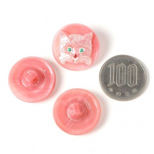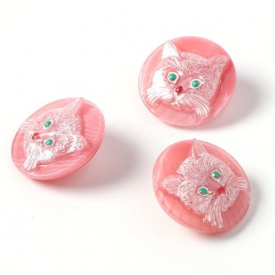 > 猫さんのガラスボタン ピンク&白猫 2.2cm
