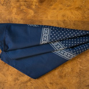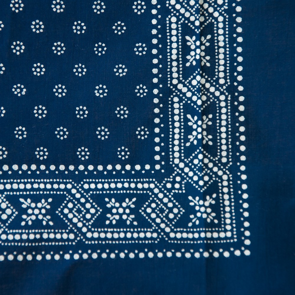 こちらはチェコで伝統的に製作される藍染の工房からの商品。スカーフとして売られていますが、万能テキスタイルでテーブルクロスなどにももちろん使用できます。すべてハンドプリントで一点一点丁寧に仕上げられています。素材は薄手の綿布。細かなどっよのお花柄が爽やかで昔懐かしい感じもします。藍染のお布は木のブラウンのお色とも相性が良く、カントリー調のインテリアなどにとてもよくマッチします。モラビアでは民族衣装に使われたりします。アイディア次第で使い方はいろいろです。工房からの新品の商品です。