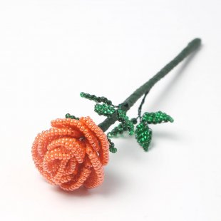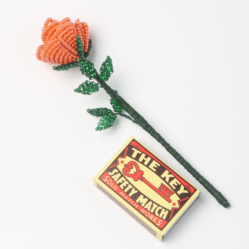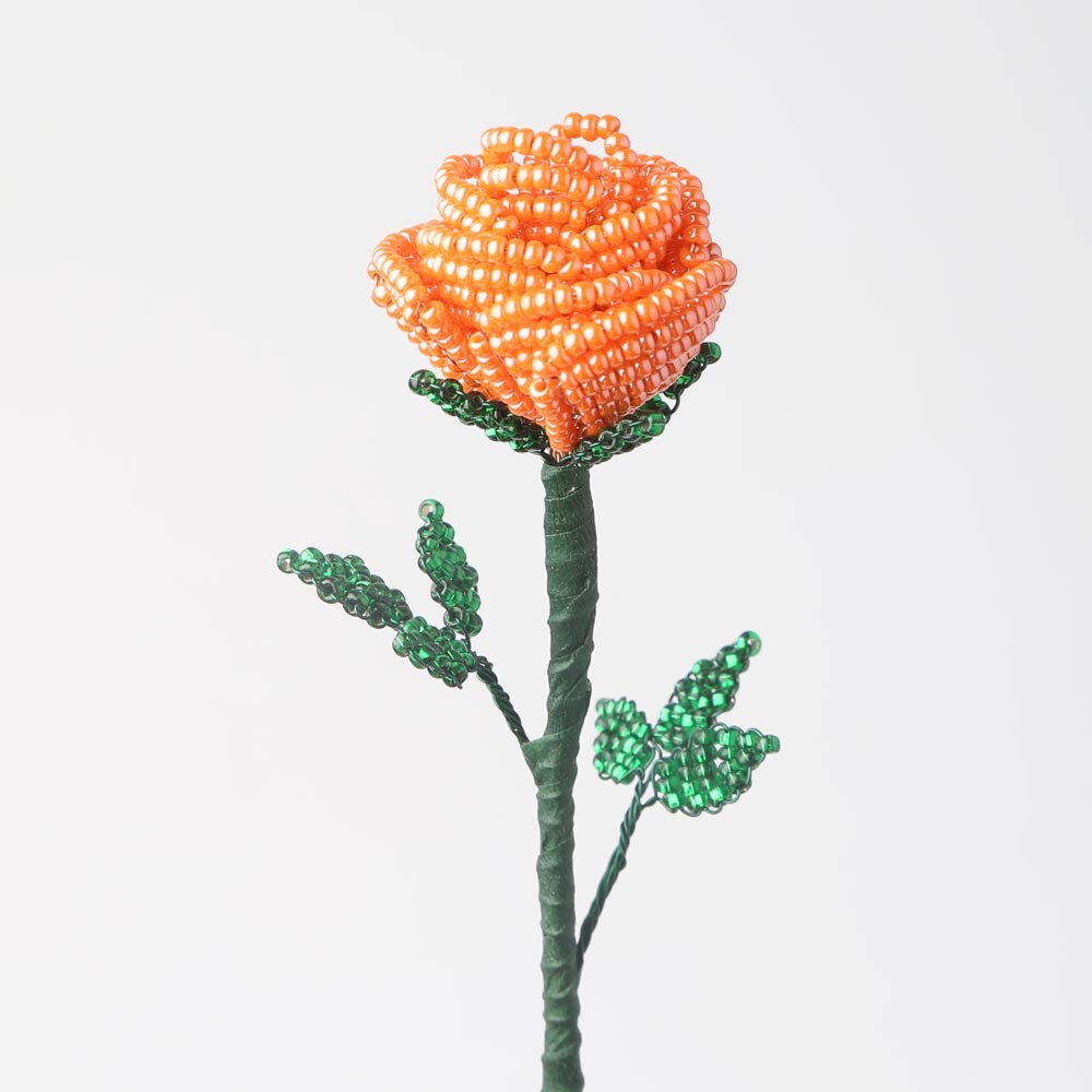 > ヤナおばあさんのビーズ 一輪のオレンジ色のバラ