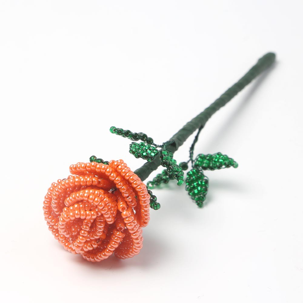 ヤナおばあさんのビーズ 一輪のオレンジ色のバラ