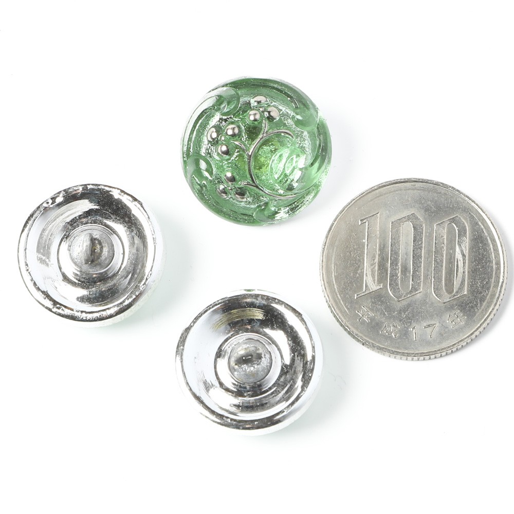 ガラスボタン 1.8cm バロック グリーン&シルバー