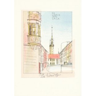 こちらはチェコのイラストレーター、グラフィック・デザイナーのカレル・ベネシュ(1932-2021)の制作したリトグラフ作品。カレル・ベネシュは蔵書票やリトグラフ作品、絵本のイラストも手がけ、チェコ人には馴染み深いイラストレーターで、市場でも人気の高い作家です。こちらはチェコのある街の広場を描いた蔵書票です。パステルカラーの柔らかいお色を使った明るい雰囲気のイラストです。額に入れて飾ると素敵なインテリアになります。ナンバリングは136/200。1987年の作品で本人の直筆署名入りです。