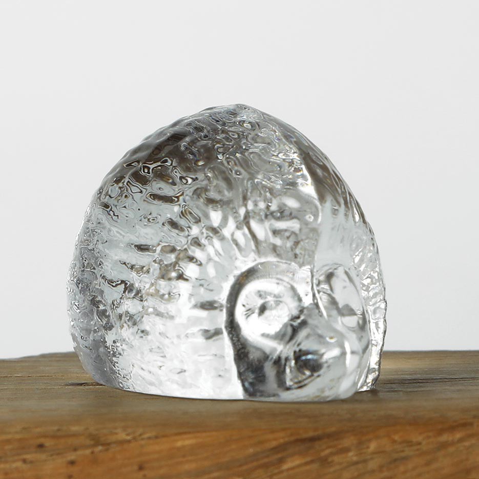 こちらはチェコならではのガラス製はりねずみの置物。文鎮として制作されているものです。型にガラスを流して造るチェコの伝統工芸品でこちらでも人気のコレクターズアイテムです。透明のガラスを使用したもので、デッドストックの商品。ヒビやかけのない状態もパーフェクトなものです。おっとりとした佇まいのハリネズミさんはチェコならではのアイテム。優しい雰囲気があり、机周りを素敵に演出します。インテリアとしてどこにおいても、可愛らしく絵になる一品です。