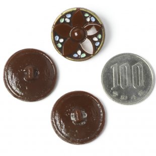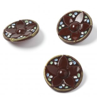 アンティークのガラスボタン 2.2cm フラワー・ブラウン