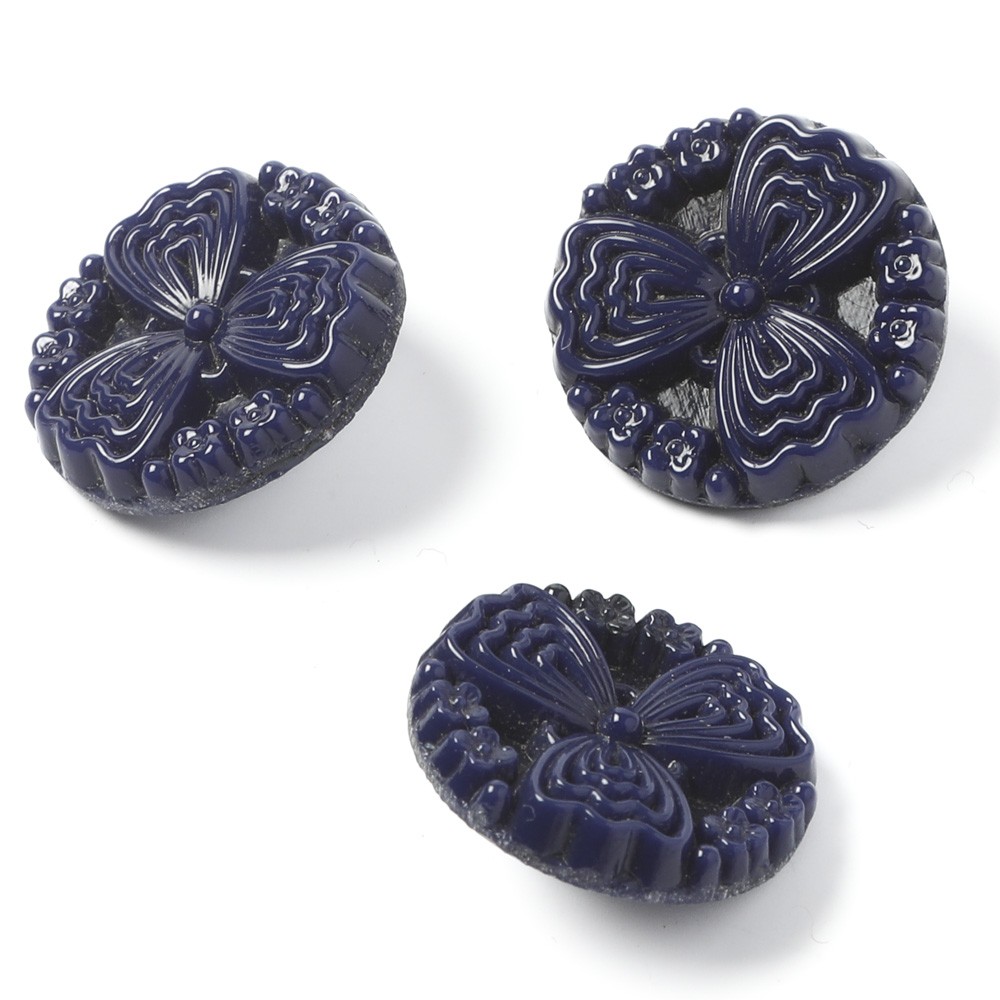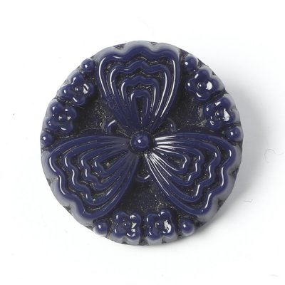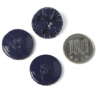 バーボフカが長年コレクションしてきたアンティークのガラスボタンからのお品です。不透明の濃いブルー色のガラスを使用したボタンで表面には3弁の花弁のお花の模様が入っています。繊細でアンティークらしいデザインです。昔懐かしい雰囲気があります。1920年頃のカードに縫いつけてあった100年古いアンティークです。コレクションにいかがでしょうか。