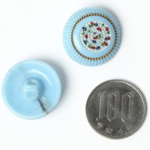 アンティークのガラスボタン 2.2cm 水色・粒々