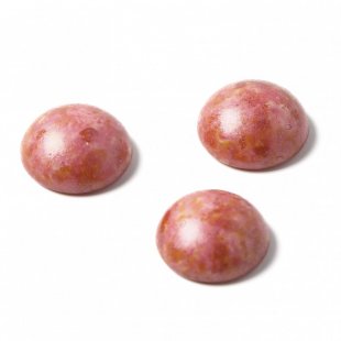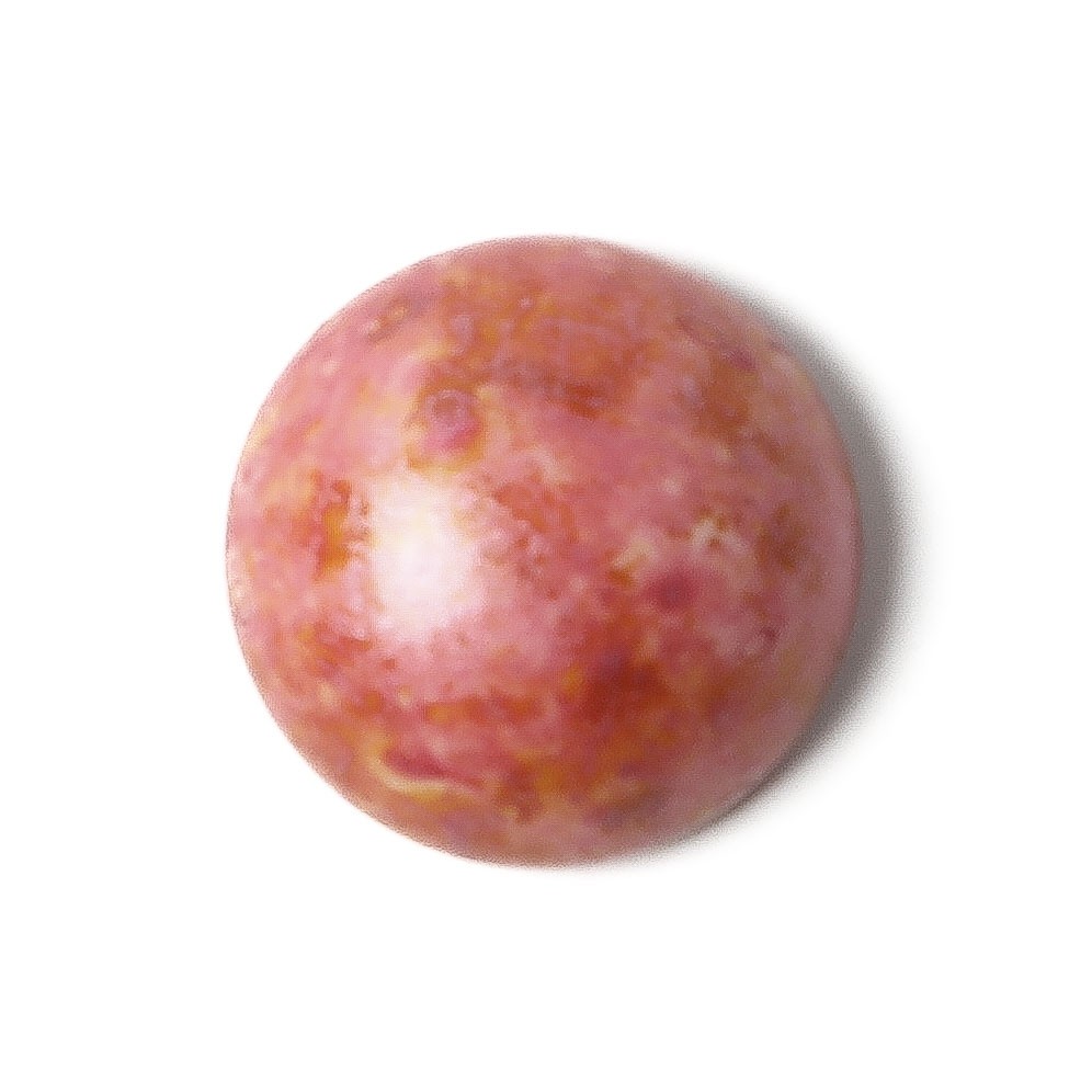 こちらはチェコのガラス工房からの新作のガラスカボションです。不透明のチェリーピンクに白とブラウンが混ざって、天然石のような風合いの美しい仕上がりです。形自体はぽっこりと丸みを帯びたシンプルなものです。フォルムはひとつひとつ手作りですので、パソコンで描くような完璧な丸ではございませんので、ご了承ください。(写真をご参照ください。)ガラスの国チェコからのとっておきのカボションです。
