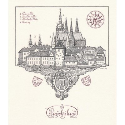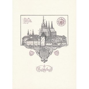 こちらはヨゼフ・ヘルチーク(1922-1999)の製作した銅板印刷のプラハ城を描いたグラフィック作品。ヨゼフ・ヘルチークは個人的に店長横山も大好きなグラフィック・アーティストです。何よりチェコスロヴァキア時代の切手の版を彫ってきた彫り師でもあります。彫り師としてはレジェンドとも呼べるような素晴らしい仕事を数多く残しました。まさにチェコ人の黄金の手を持つ職人です。こちらも例にもれず大変繊細な描写で、街の東側からプラハ城を望む写実的な描画で、チェコのライオンの紋章なども入り、デザイン的にもとても素敵な一枚です。プラハが好きな方には、きっとお馴染みの景色・・・額に入れて飾るのがおすすめのグラフィック作品です。残念ながら作者署名は入っておりません。